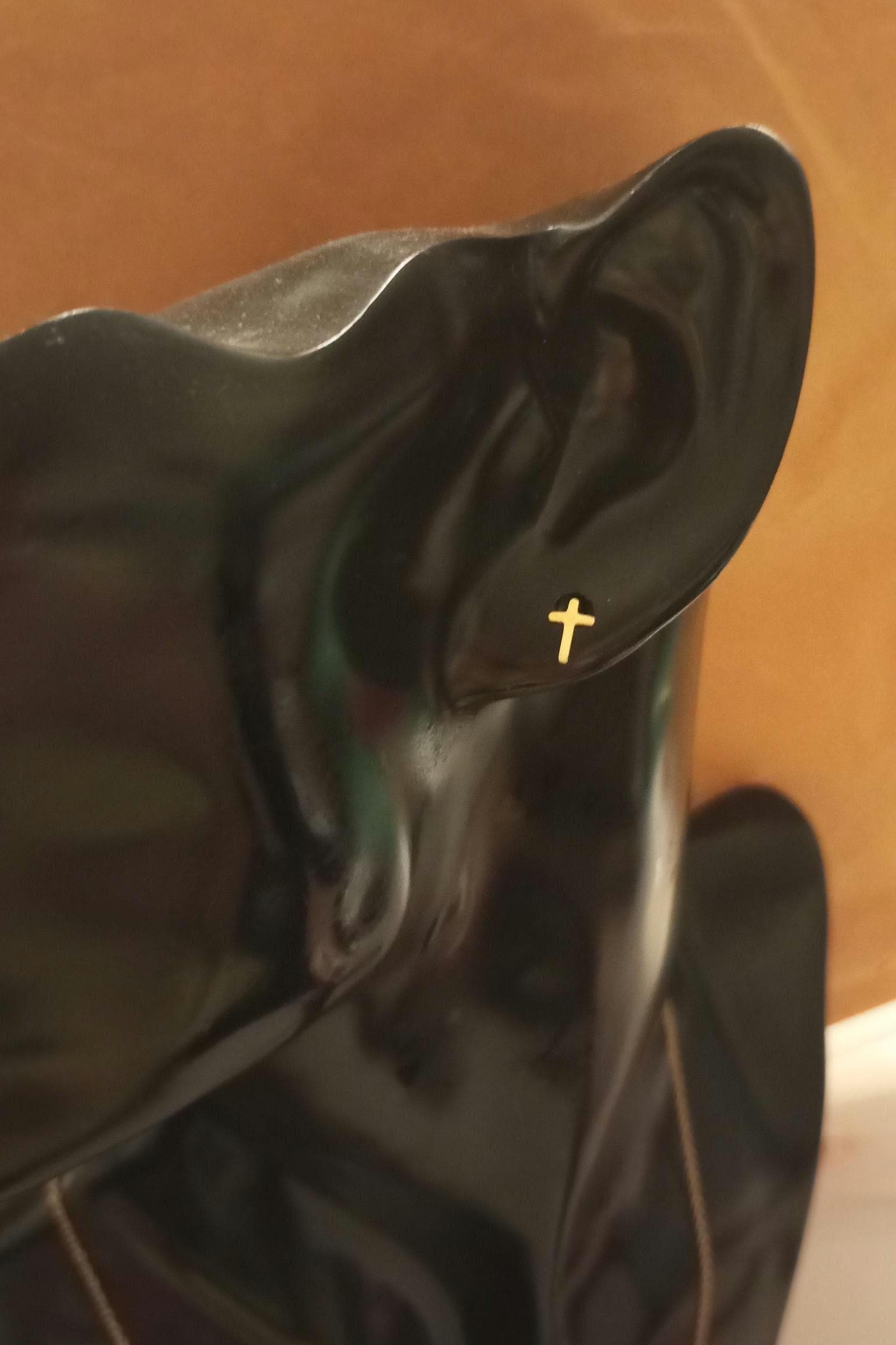 Brincos de ouro verdadeiro 18K, cruz, unisexe, pequenos, amarelo, ouro 750, crucifixo, joias religiosas, presente de ouro, joias cristãs, homens, tachas