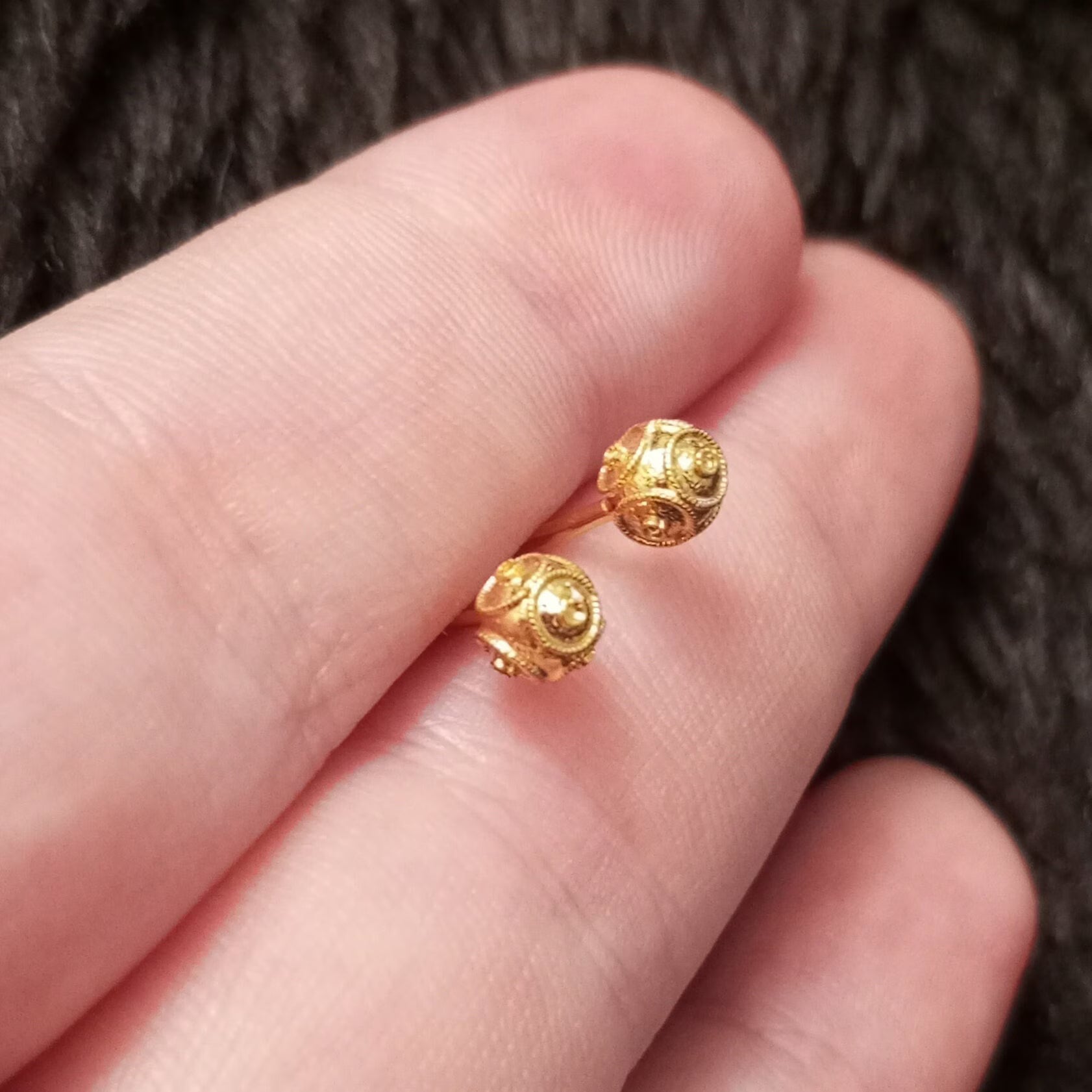 Solid Gold Filigree Viana Bead Stud 4mm Portuguese Earrings