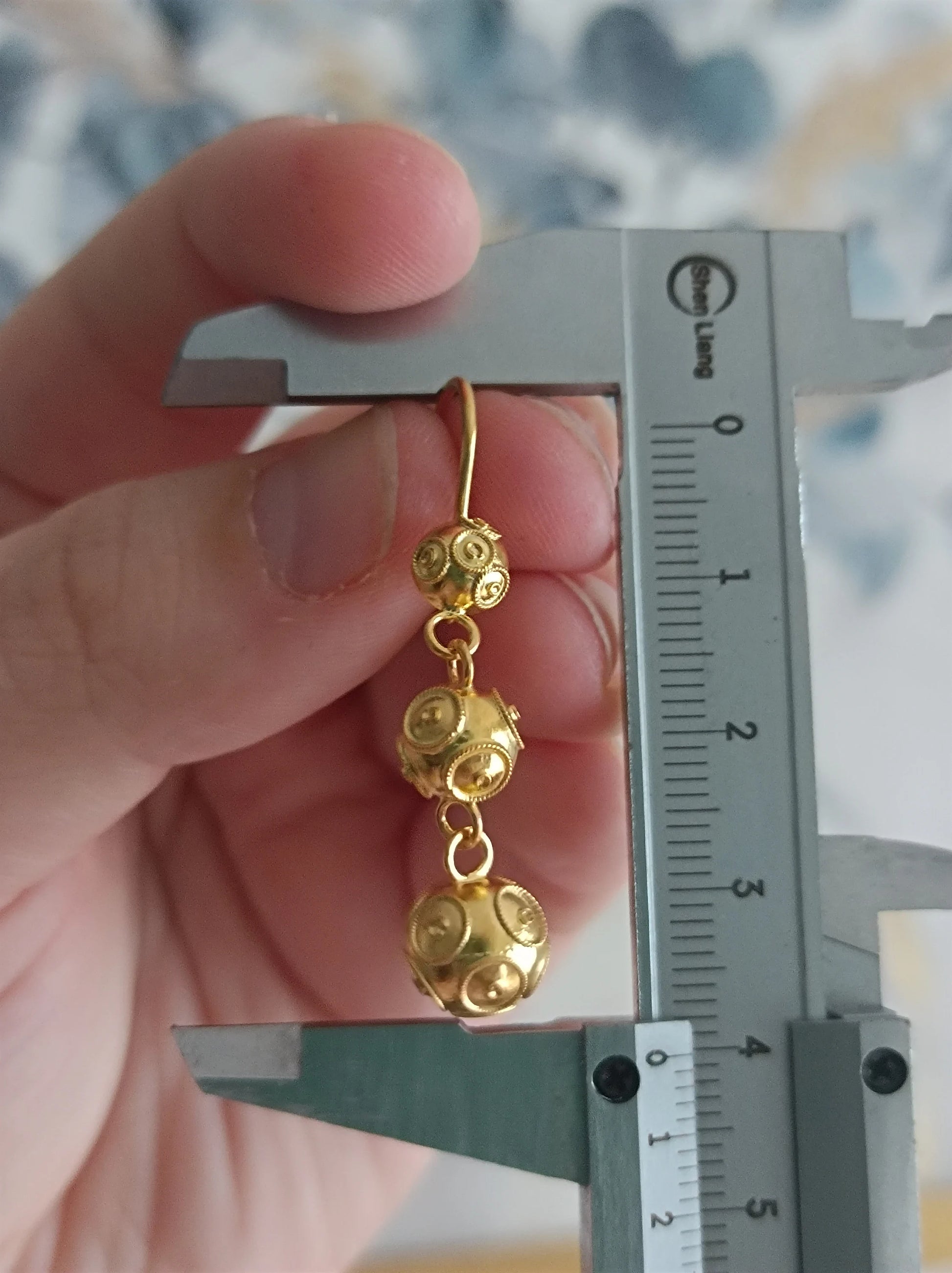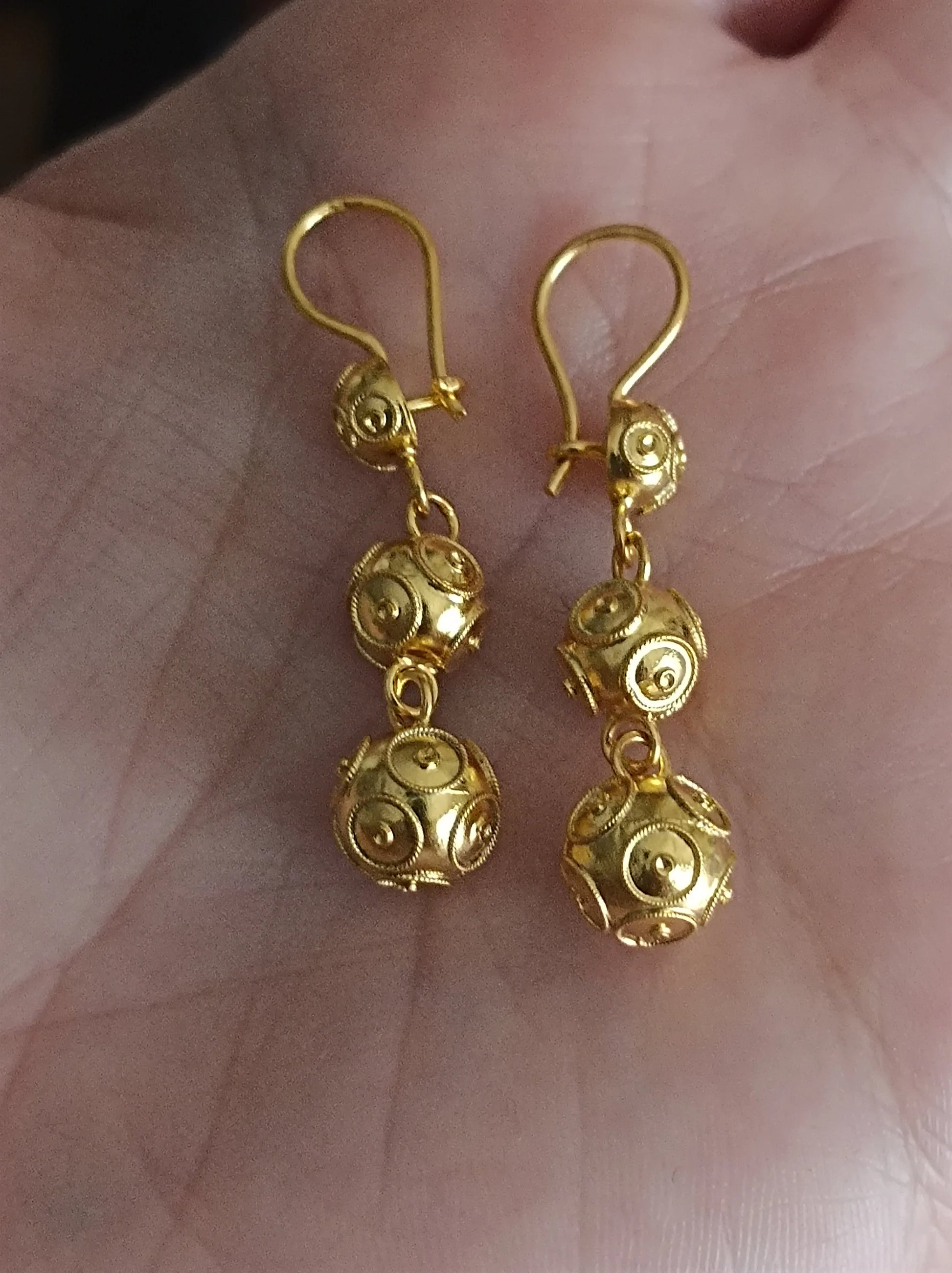 Portuguese Vintage Style Filigree 3 Dangling "Viana Beads" in Gold-Vermeil Silver