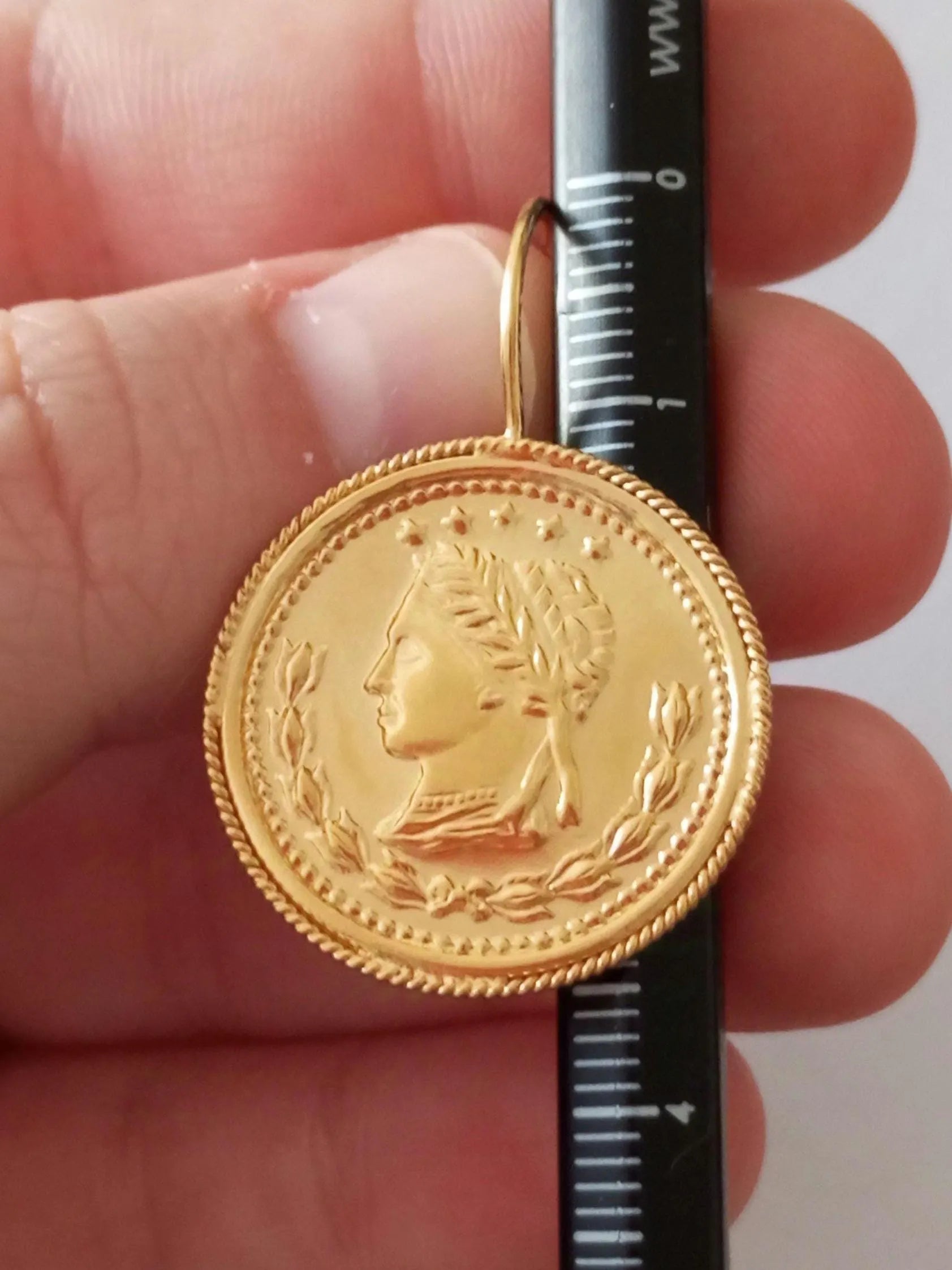 Gold-Vermeil Coin Earring Vintage Style Sovereign Inspired Portuguese Earrings