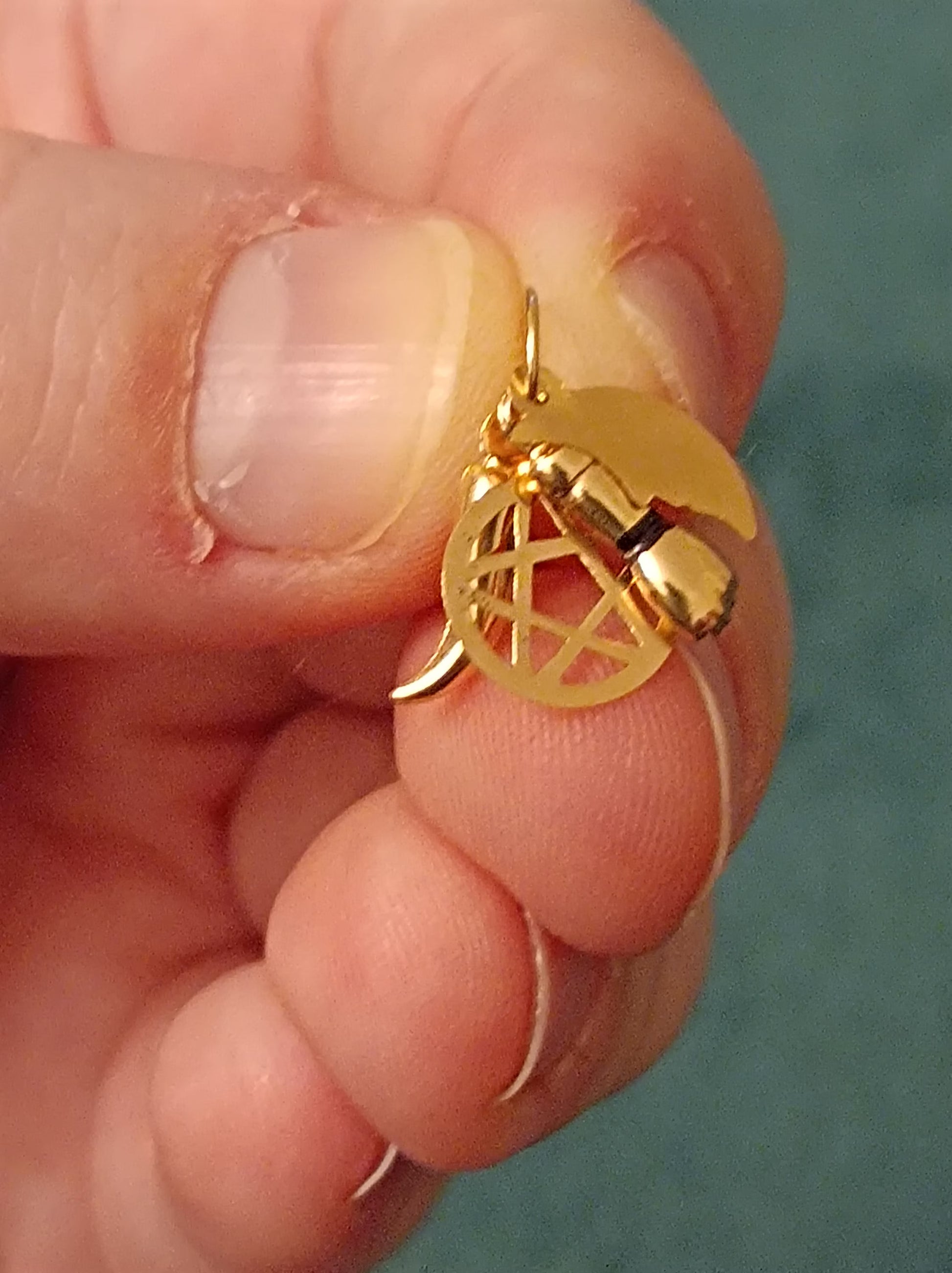 Portuguese Solid Gold Saint Saimon Pendant with 4 Charms Five Pointed Star, Moon, Fig, Horn