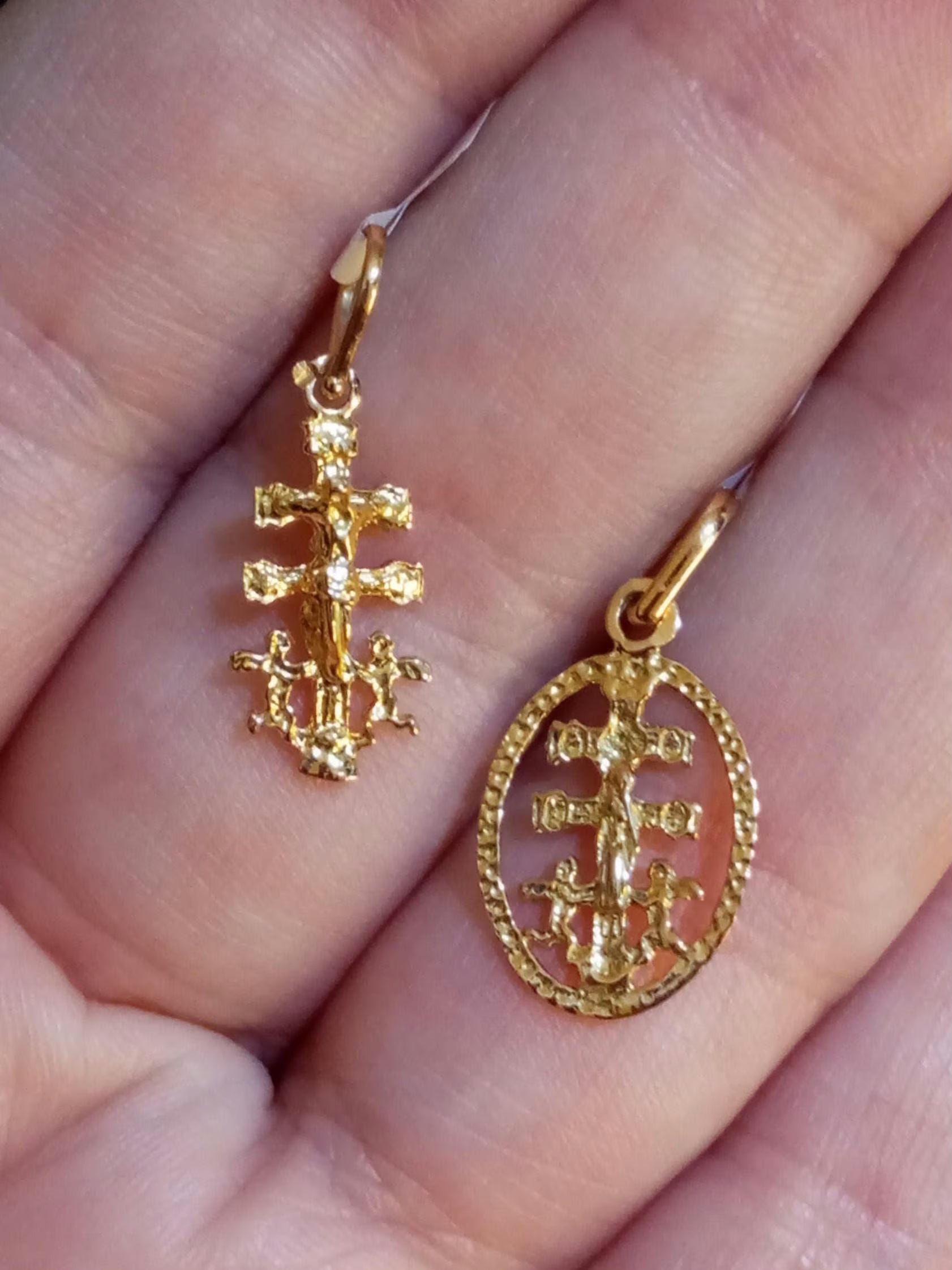 Solid Gold Caravaca Cross Pendant 19Kt Gold Yellow Crucifix Pendant
