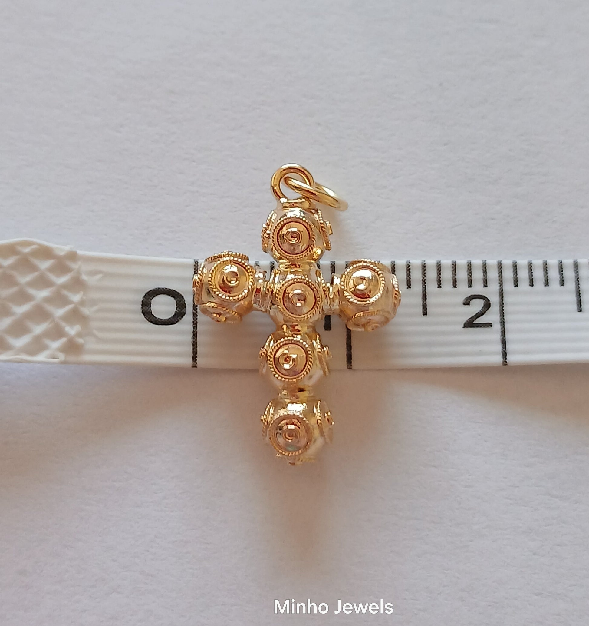 Gorgeous Traditional Filigree Beads of Viana Cross Pendant in Portuguese 19.25 Carats Solid Yellow Gold, Gold 800, properly hallmarked.