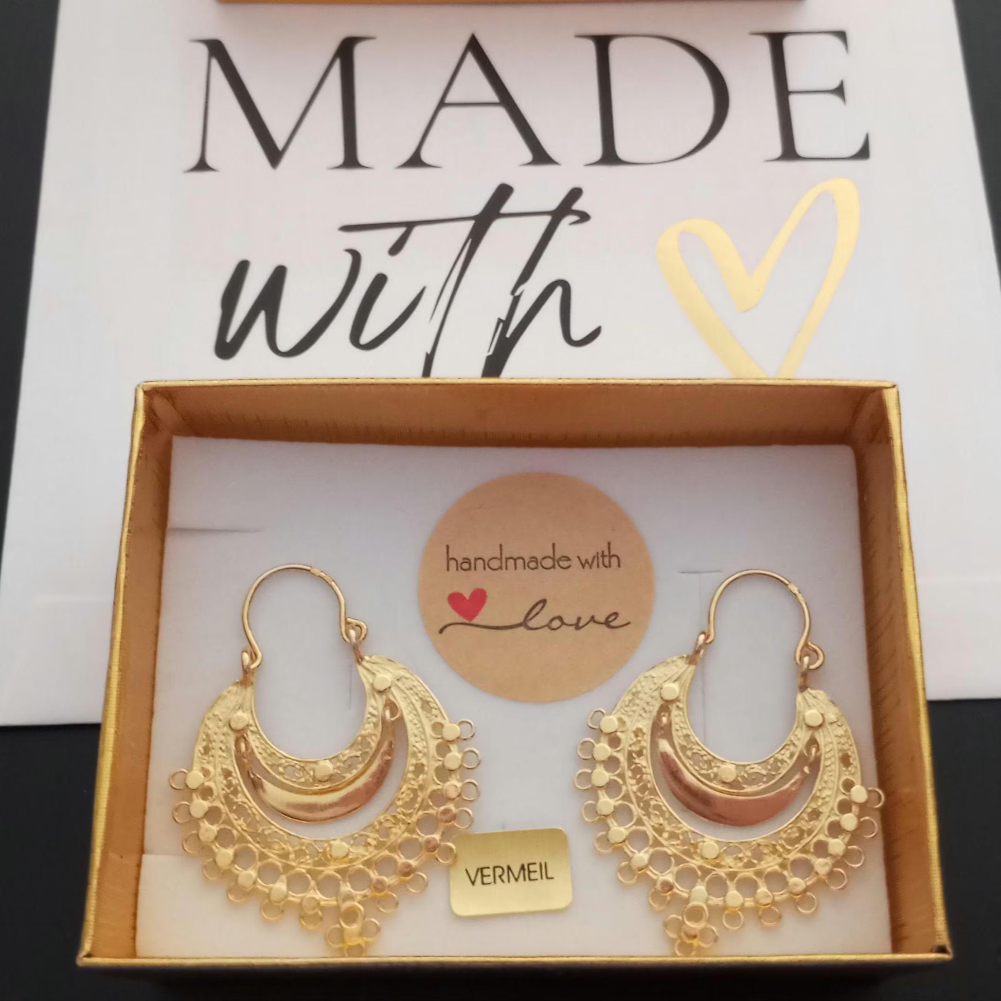 Brincos de argola tradicionais portugueses da região do Minho, "Arrecidas", em ouro vermeil, prata de lei 925 com banho de ouro, feitos à mão com a icónica técnica portuguesa de filigrana.